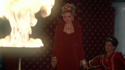 В прошлом Уилл Скарлет и Анастасия прыгают в зеркало-портал и попадают в Страну Чудес. Но вскоре оба понимают, что жизнь в новом мире не такая, как они представляли. После унижения на балу Анастасия уговаривает Уилла украсть из королевского замка драгоценности, чтобы уйти от нищеты. Однако Красный Король ловит мошенницу с поличным и делает ей предложение, от которого девушка не может отказаться: выйти за него замуж и стать Королевой, избежав судебного преследования. В настоящем времени Красная Королева убеждает Алису помочь добыть волшебную пыль в обмен на информацию о Сайрусе. В свою очередь Сайрус сбегает из темницы Джафара, подвергая опасности Белого Кролика. | |||